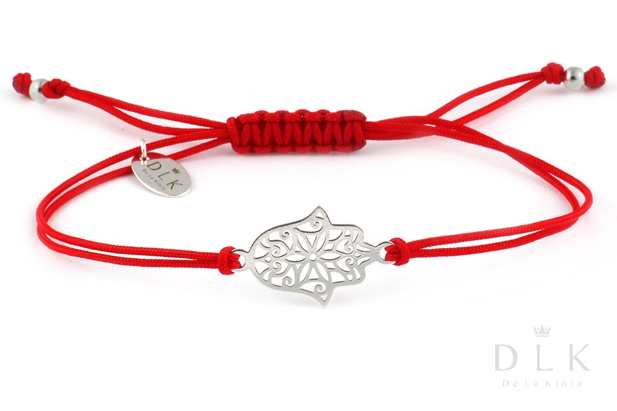 Bracelet “Chamsa Red string with silver hand of Fatima” is a light, very feminine proposition from the spring-summer collection. Its uniqueness lies in its casual character and modest, yet elegant form. The bracelet is made of a string in an intense red color, the symbol of Fatima’s hand, balls and the DLK pendant are made of 925 silver. Chamsa, also the hand of Fatima or the hand of Miriam – a symbol used in Arab countries and Israel in amulets to protect against the “evil eye” “. The name “hand of Fatima” refers to the daughter of Muhammad. The Israeli variety is also known as the “hand of Miriam” – which in turn refers to the sister of Moses and Aaron. Its task is to protect the faithful from evil. Christians identify it with the hand of Mary and it is primarily a symbol of God’s protection against evil and misfortune. In Asia, the hand is considered a symbol of happiness. Raw material: 925 sterling silver Fatima’s hand size: 20 x 12 mm Material: String (also available in other colors – enter the desired color of the string in the order notes) Are you interested in a different length or want to change something? Contact us: info@delakinia.com