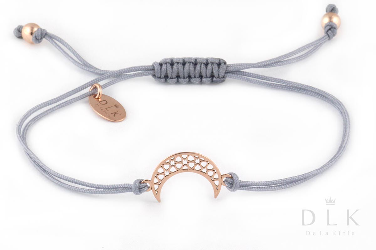 Bracelet “Gray string with a moon in Rose Gold”