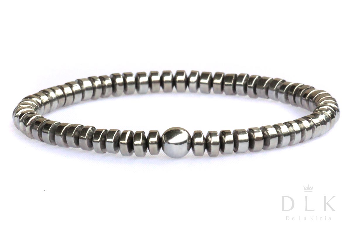 “Hematite rings” bracelet made of hematite in the shape of a donut with a decorative ball, silver color.