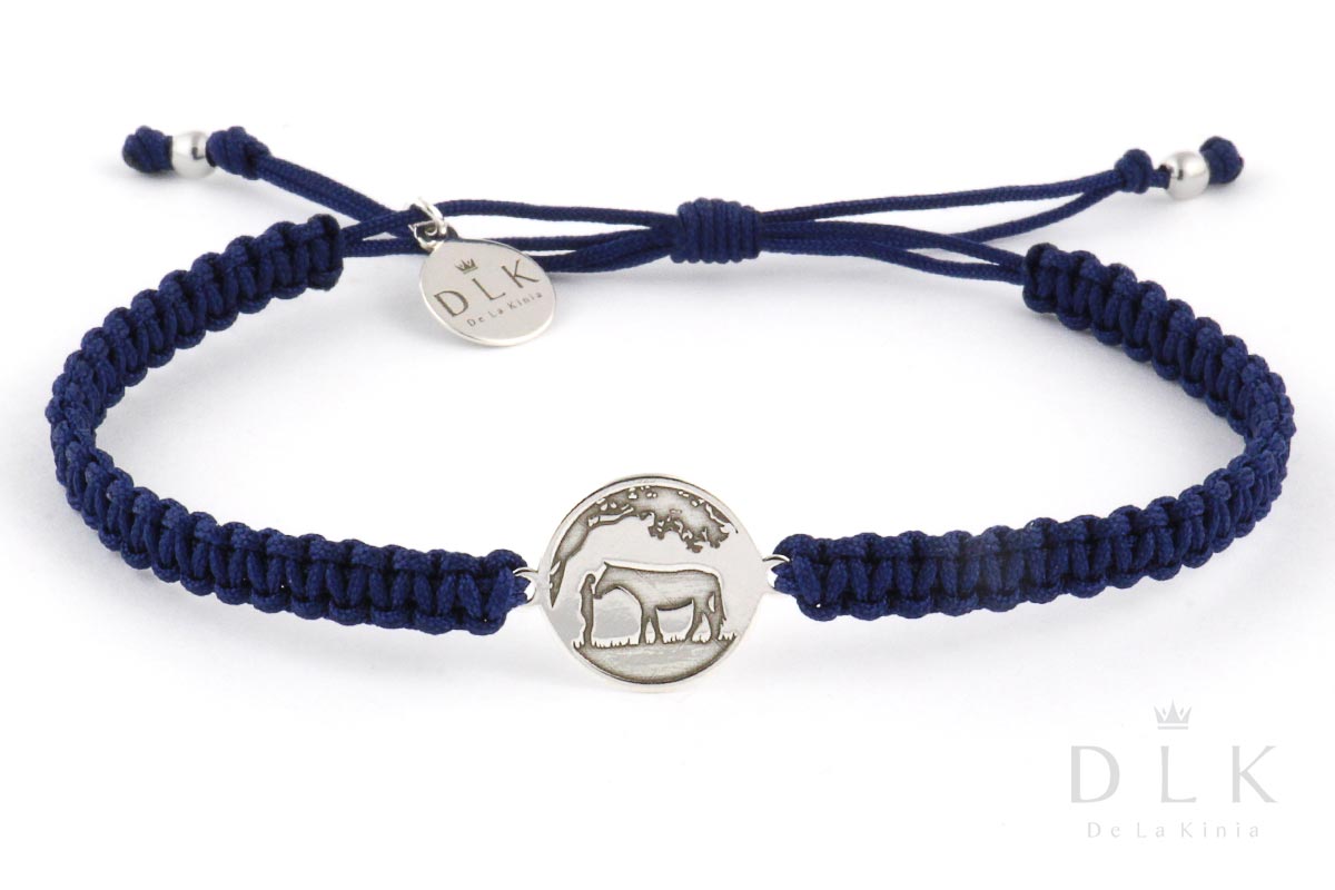 A string bracelet “Navy blue macrame with a man and a horse” from the Lucky Horses collection is a proposal for all horse lovers and those who are not indifferent to the life and welfare of animals.