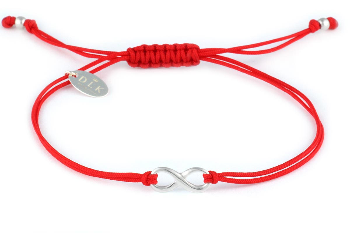 The bracelet “Red string with infinity” is a light, very feminine proposition from the spring-summer collection. Its uniqueness lies in its casual character and modest, yet elegant form. The bracelet is made of a string in a vivid red color, decorative infinity, balls and the DLK pendant are made of 925 silver.