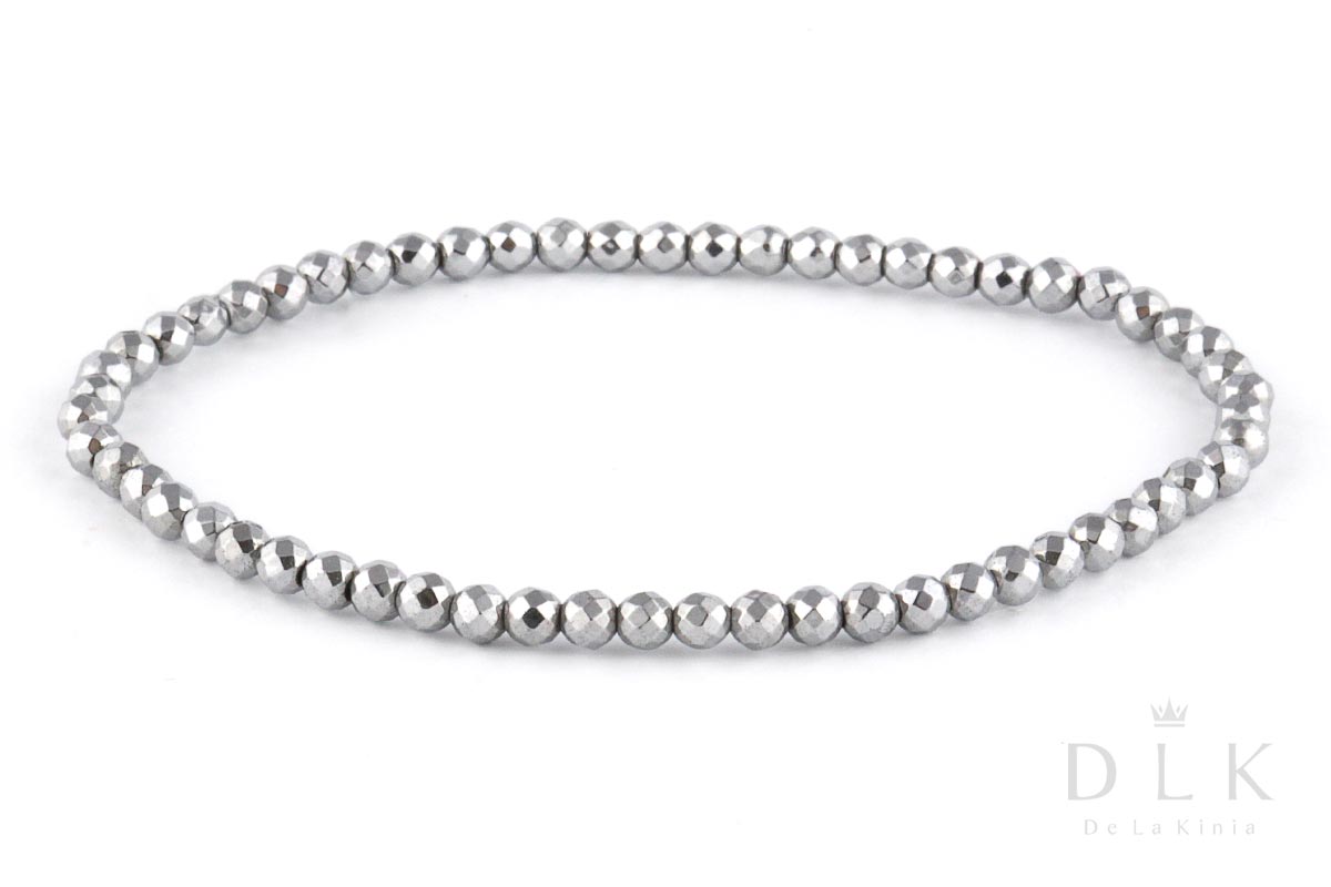 “Silver hematite” bracelet made of faceted hematite balls in silver color.