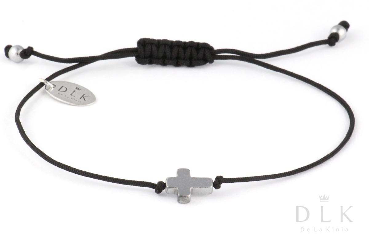 The bracelet “Silver hematite cross on a black string” is a light, very feminine proposition from the spring-summer collection. Its uniqueness lies in its casual character and modest, yet elegant form.