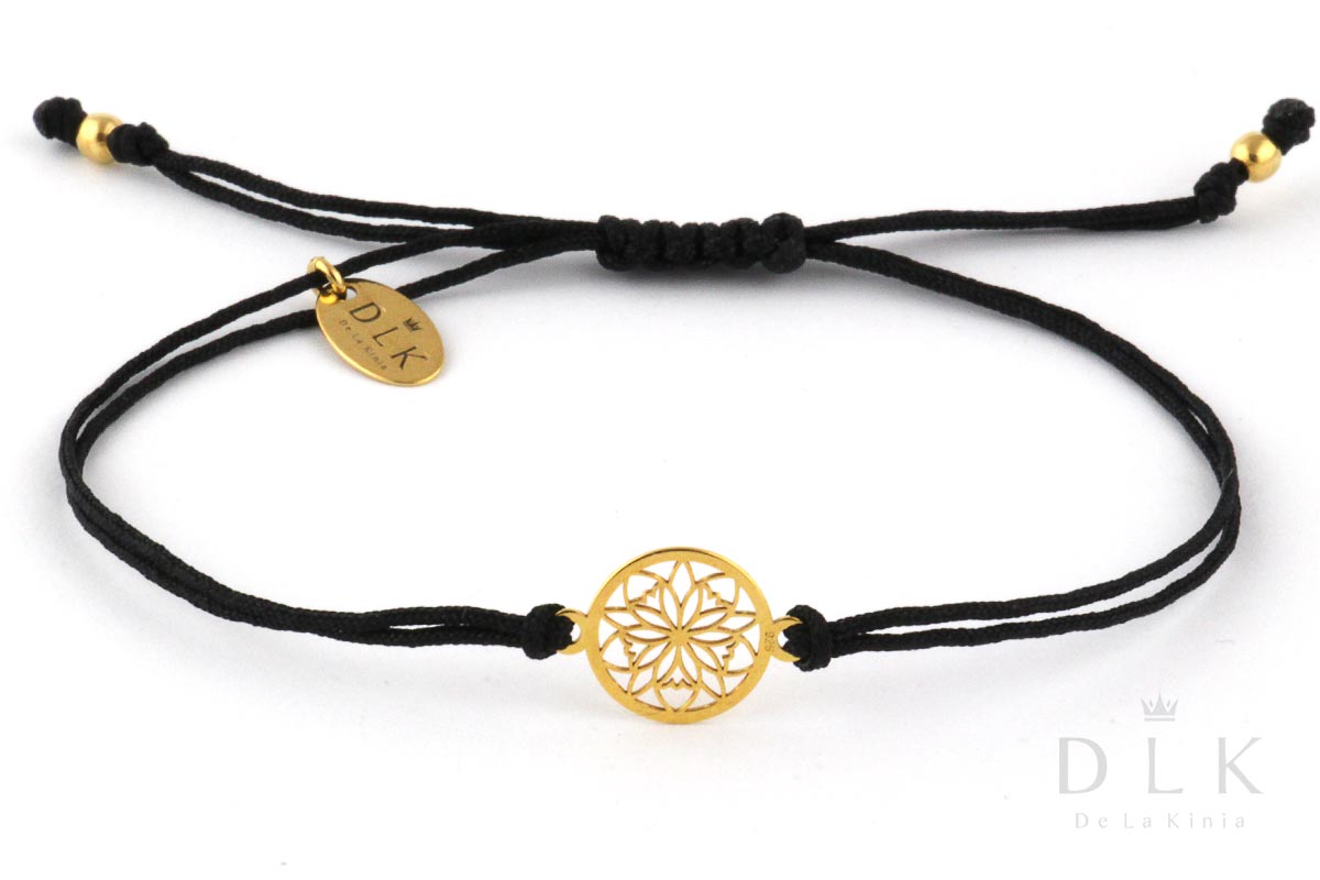 The bracelet “Black string with a golden rosette” is a light, very feminine proposition from the spring-summer collection. Its uniqueness lies in its casual character and modest, yet elegant form. The bracelet is made of a string in black color, the decorative rosette, balls and the DLK pendant are made of gold-plated 925 silver.