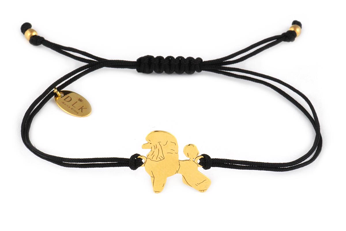Bracelet with poodle golden on a black string