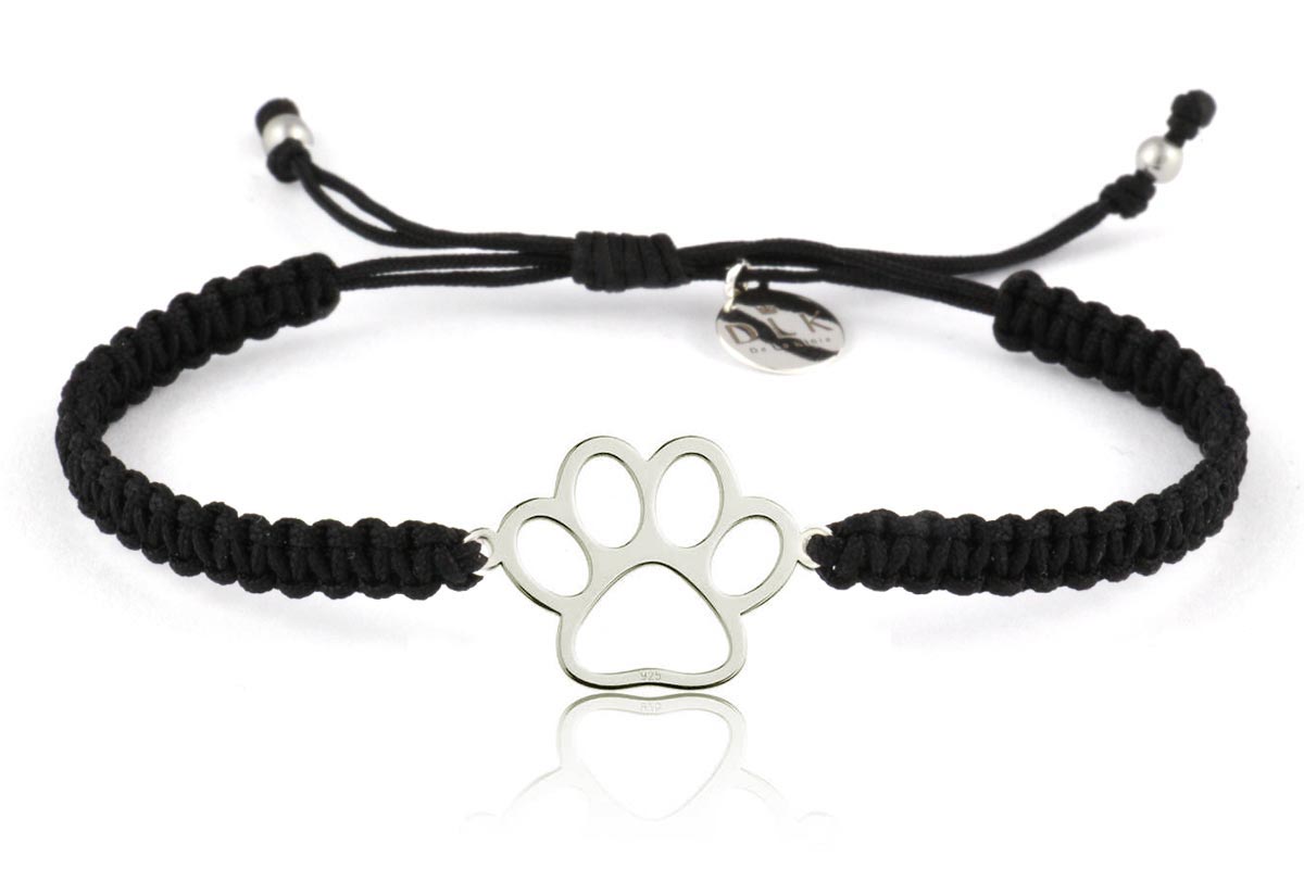 The bracelet is made of black string, the connector in the shape of a dog or cat’s paw, decorative balls at the ends of the string and the DLK pendant are made of 925 silver.