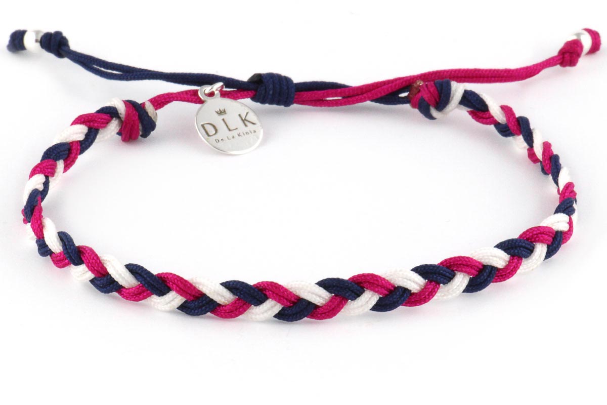 The “sailor’s braid” bracelet is made of a braided string in the following colors: navy blue, fuchsia (purple with pink) and white. Additions in the form of silver (925) DLK pendants and decorative balls at the ends of the string give the bracelet a unique character.
